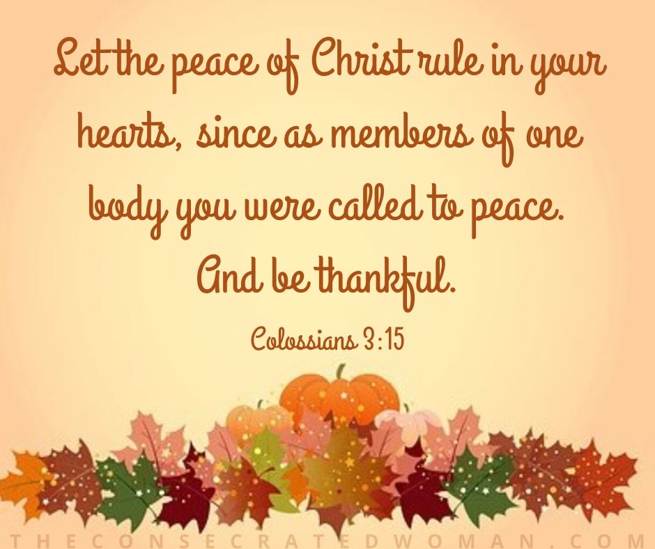 Let the peace of Christ rule in your hearts, since as members of one body you were called to peace. And be thankful.