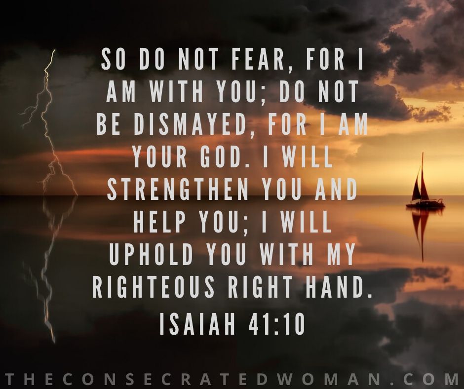 So do not fear, for I am with you; do not be dismayed, for I am your God; I will strengthen you and help you; I will uphold you with my righteous right hand.