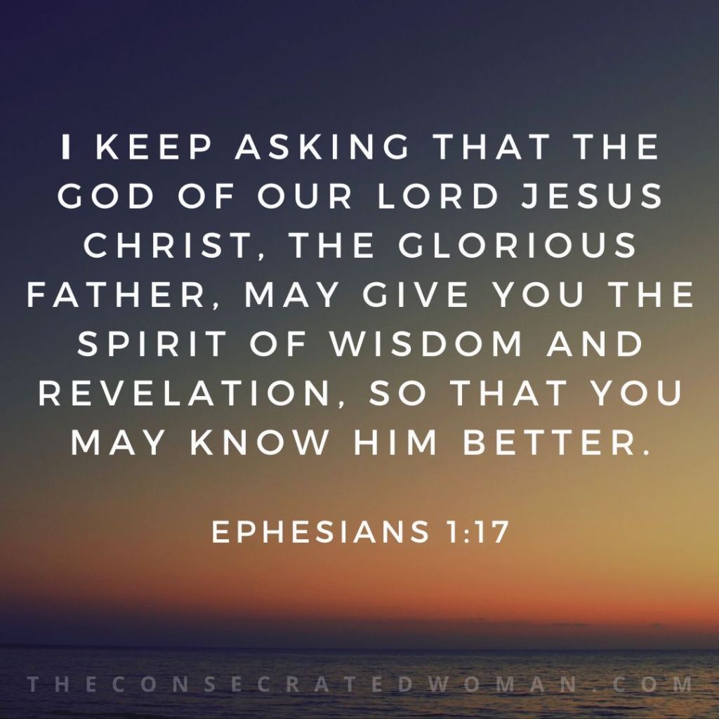 I keep asking that the God of our Lord Jesus Christ, the glorious Father, may give you the Spirit of wisdom and revelation, so that you may know Him better.