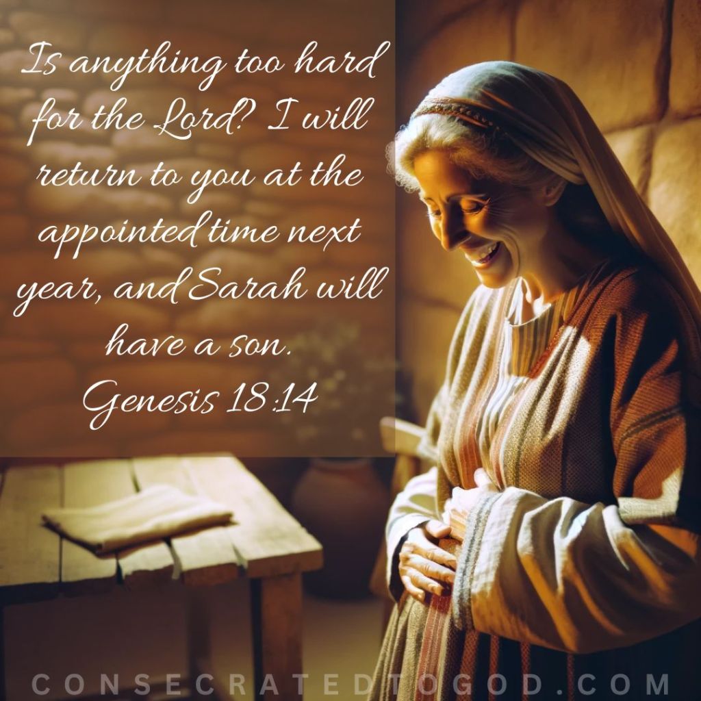 Is anything too hard for the Lord? I will return to you at the appointed time next year, and Sarah will have a son.