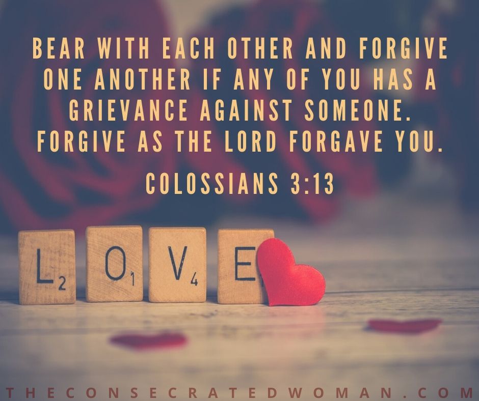Bear with each other and forgive one another if any of you has a grievance against someone. Forgive as the Lord forgave you.