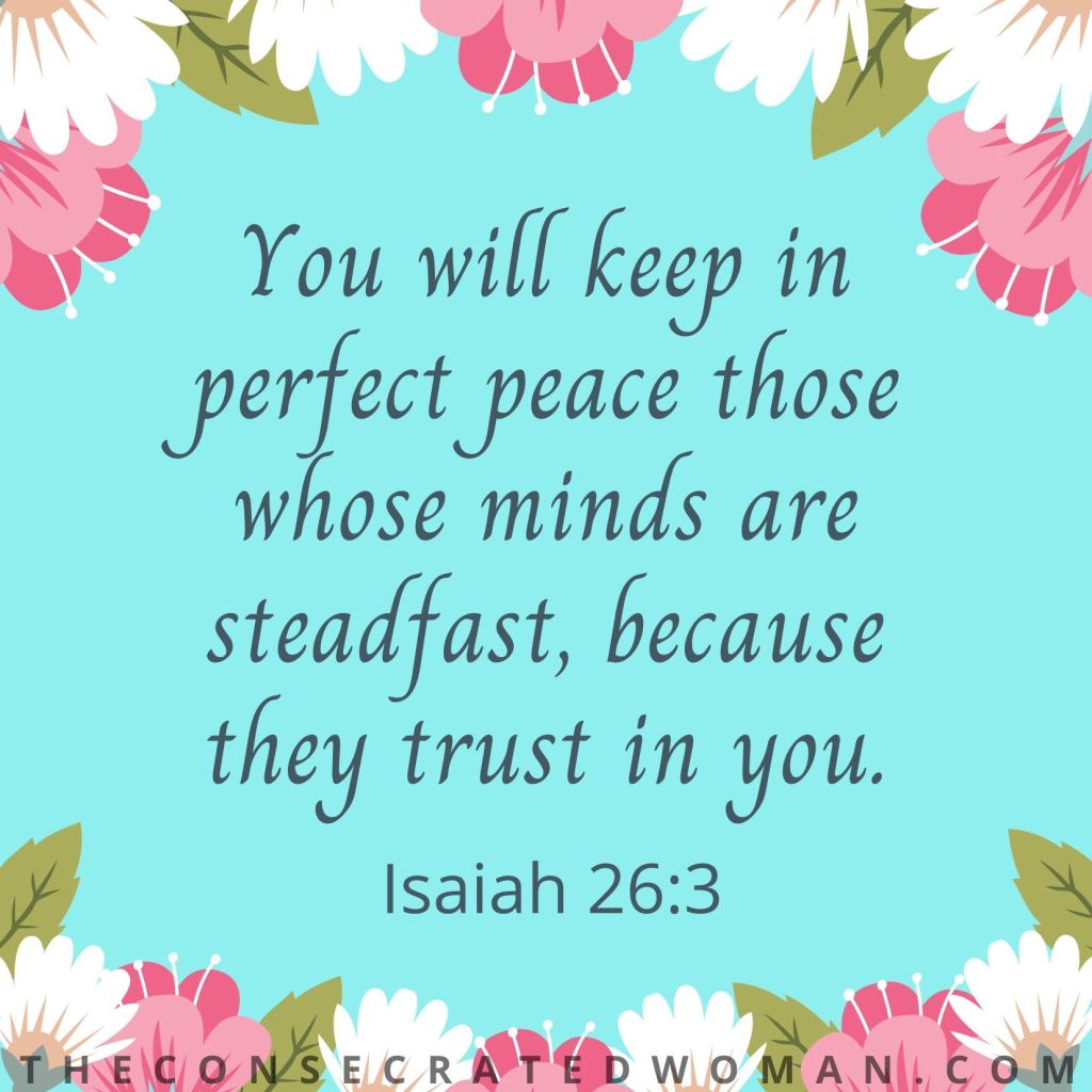 No matter what challenges you face, maintaining focus on the Lord and placing your trust in Him will give you the peace necessary to overcome any obstacle. God’s peace is profound and authentic, an inner tranquility you can only find in Him. It is the perfect peace we need for our journey through this world and it will continue forever, extending even into the realms of heaven. Keep your thoughts anchored in the boundless love that God has for you. Stay rooted in His unwavering promises and power. Give up your need to control every situation and surrender to God’s will. Allow Him to give you the peace your heart longs for.