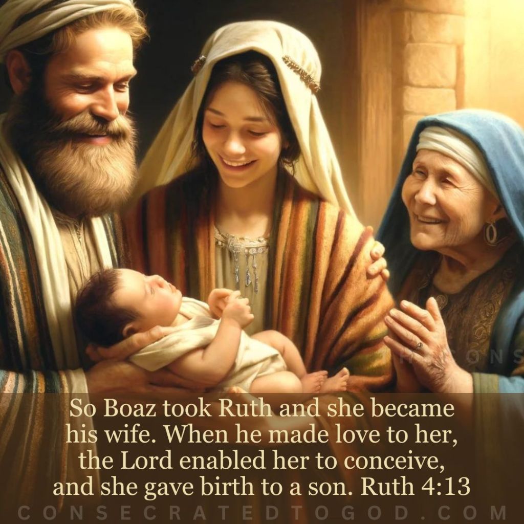 So Boaz took Ruth and she became his wife. When he made love to her, the Lord enabled her to conceive, and she gave birth to a son.