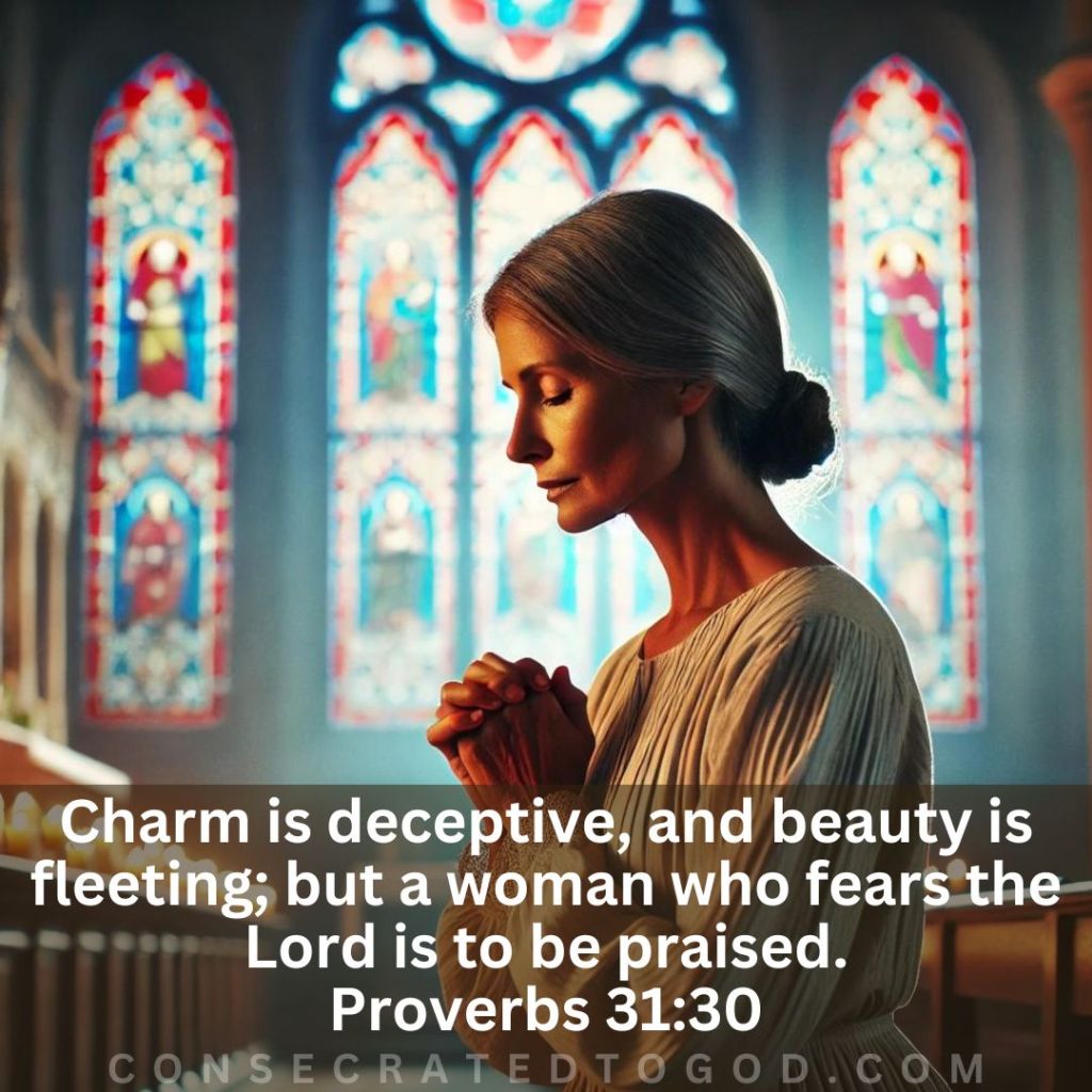 Charm is deceptive, and beauty is fleeting; but a woman who fears the Lord is to be praised.