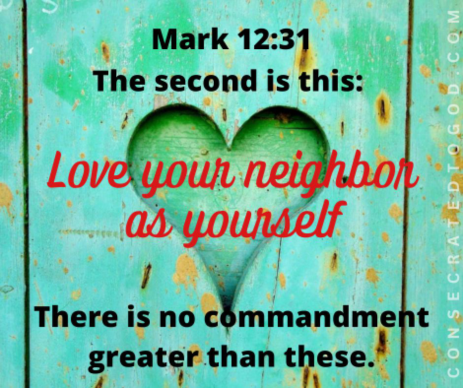 The second is this: ‘Love your neighbor as yourself.’ There is no commandment greater than these.