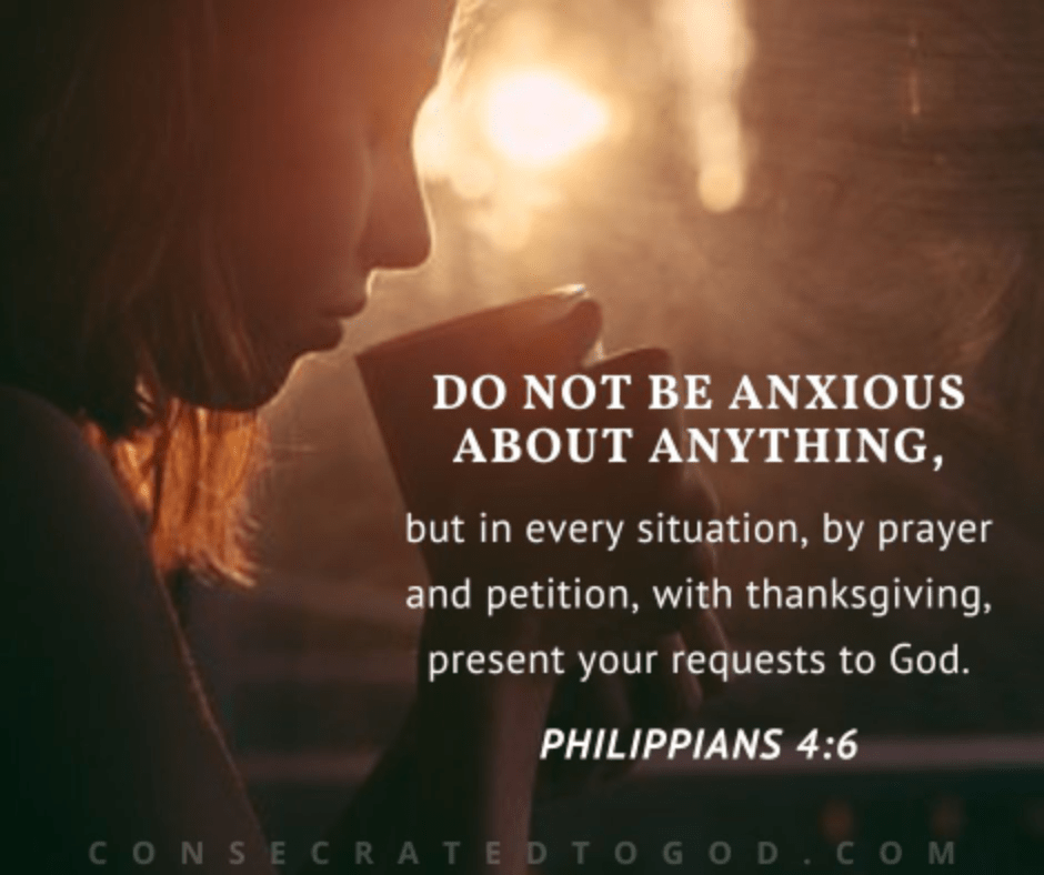 Do not be anxious about anything, but in every situation, by prayer and petition, with thanksgiving, present your requests to God.