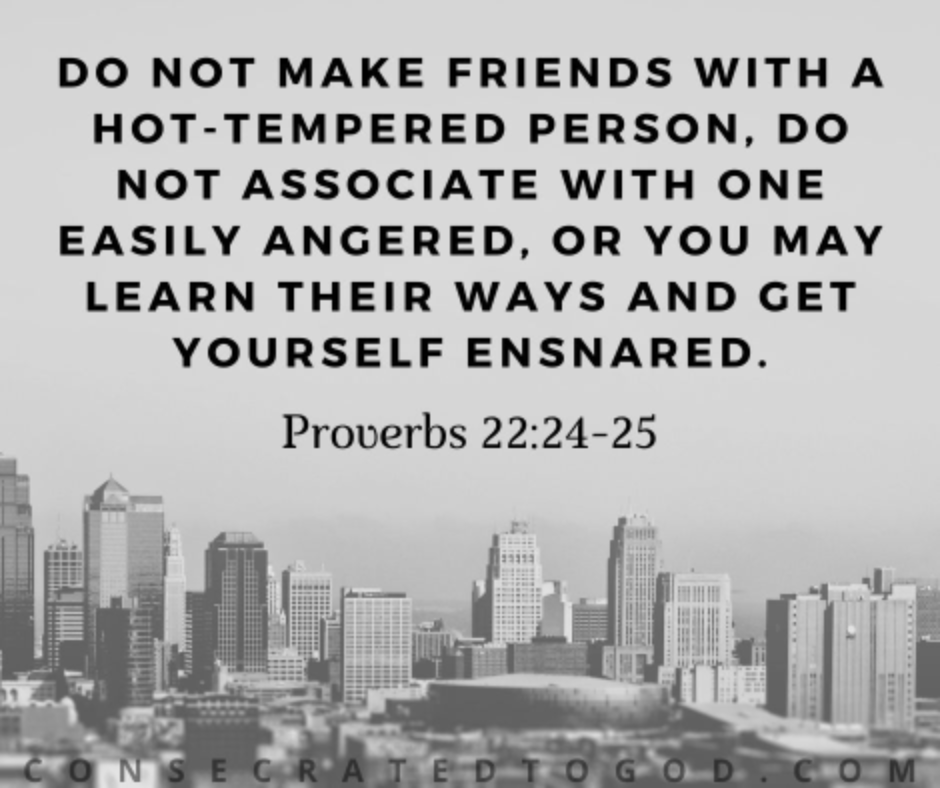 Do not make friends with a hot-tempered person, do not associate with one easily angered, or you may learn their ways and get yourself ensnared.