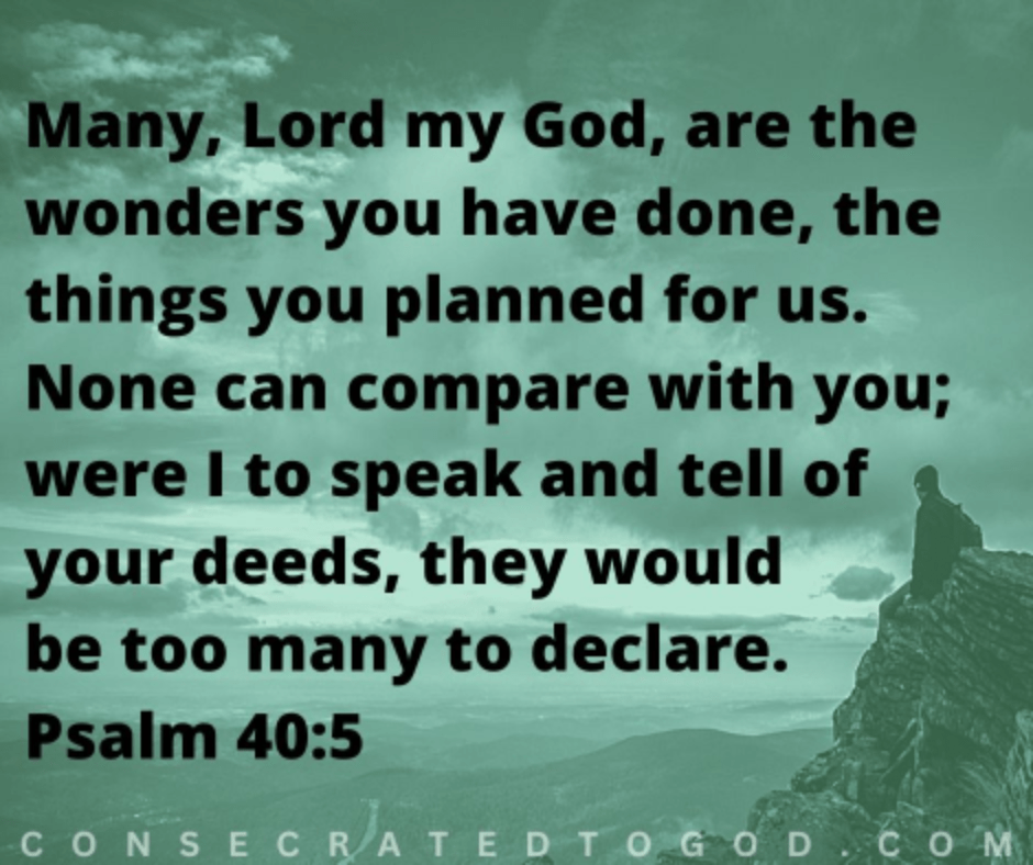 Many, Lord my God, are the wonders you have done, the things you planned for us. None can compare with you; were I to speak and tell of your deeds, they would be too many to declare.