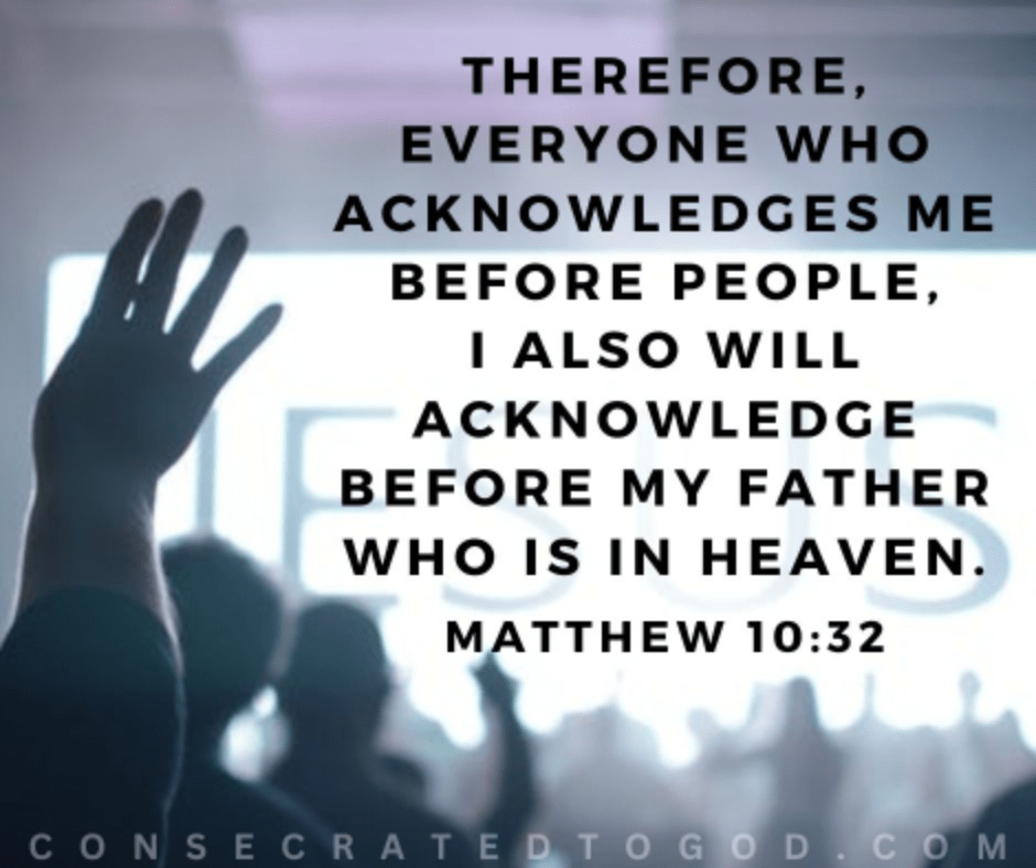 Therefore, everyone who acknowledges me before people, I also will acknowledge before my Father who is in heaven.