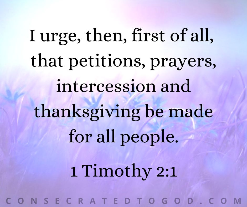 I urge, then, first of all, that petitions, prayers, intercession and thanksgiving be made for all people.