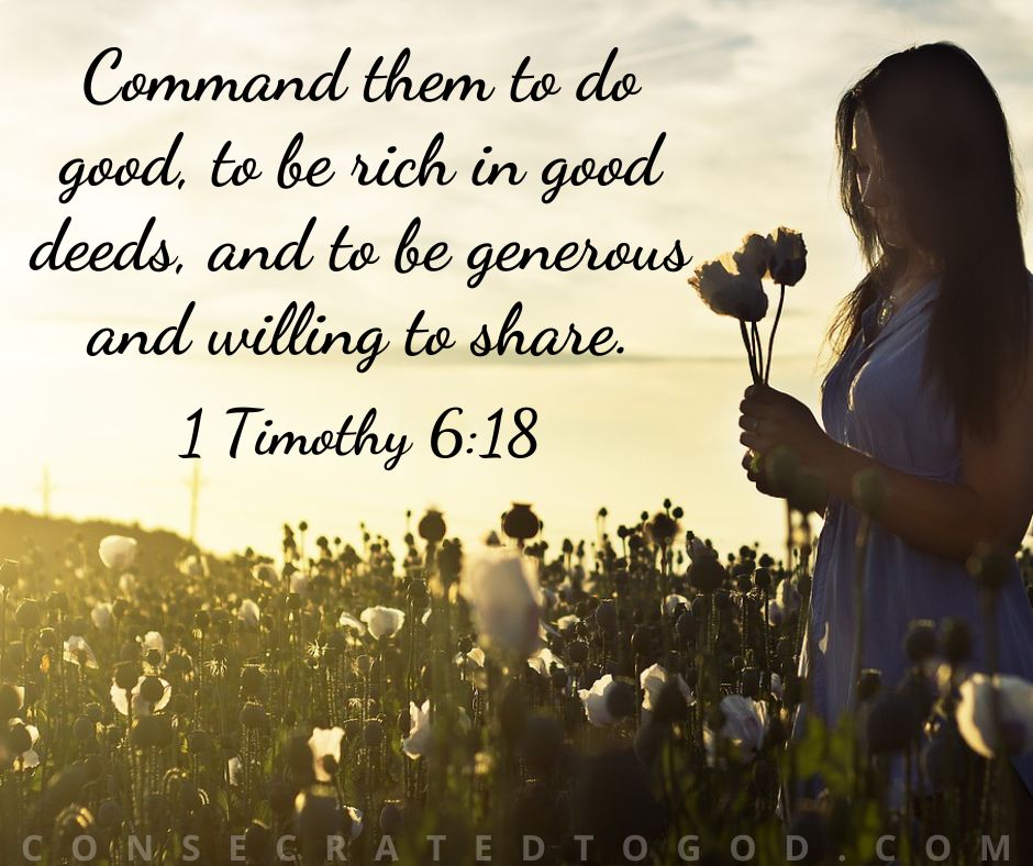 Command them to do good, to be rich in good deeds, and to be generous and willing to share.