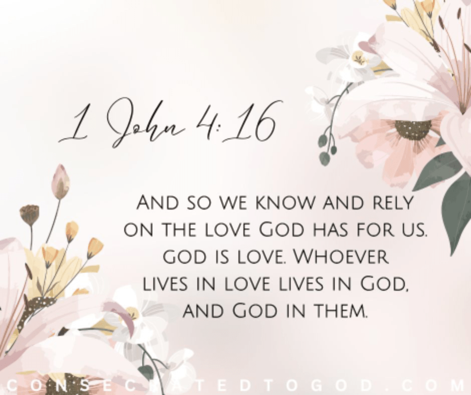 Start your day by reminding yourself, “God is love” and “God loves me.” When you hold onto that truth, it changes the way you live. You begin to walk in gratitude and treat others with kindness because you know God’s love is living in you. As you go through your day, take time to worship Him. Thank Him for His unfailing love, lift your voice in praise, and let your life be a reflection of the love He’s poured into you.