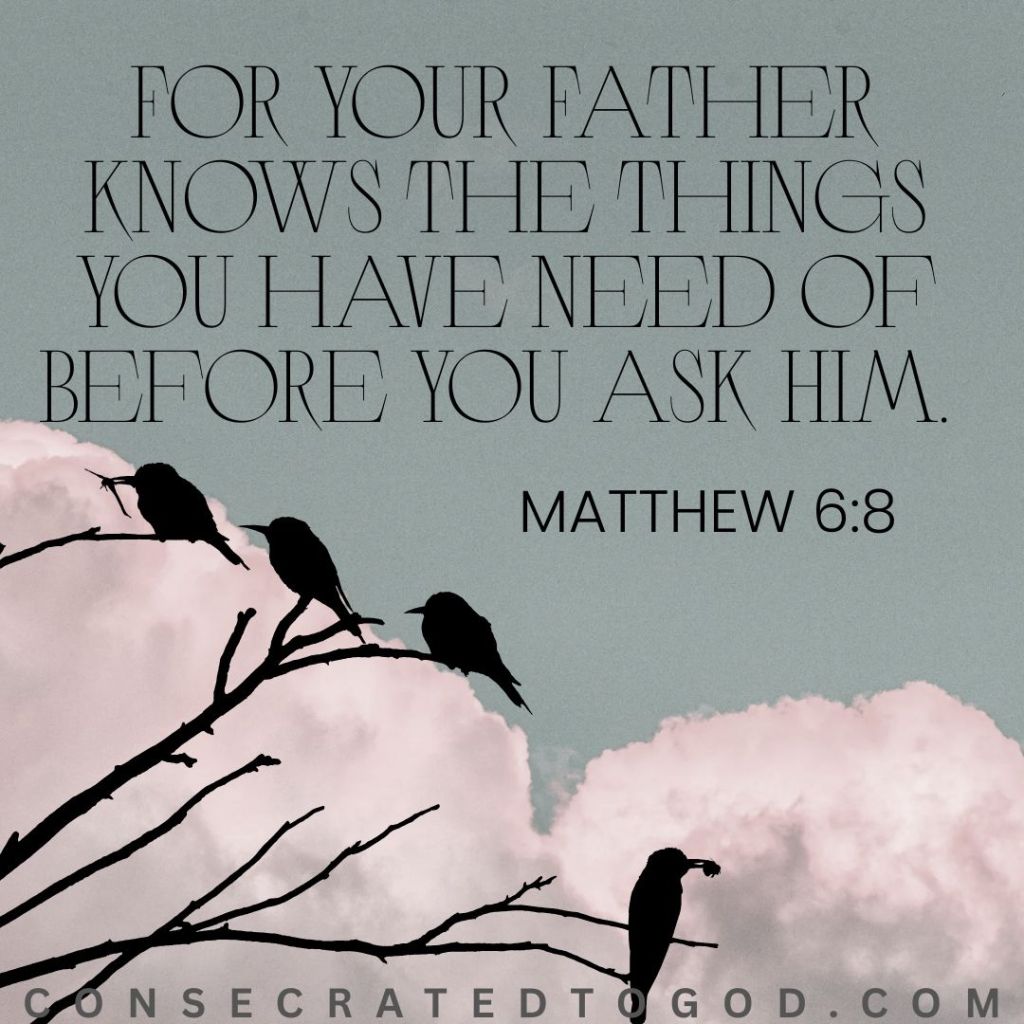 God already knows what you need before you even ask but He still wants you to come to Him in prayer, living out your faith and trust in Him.