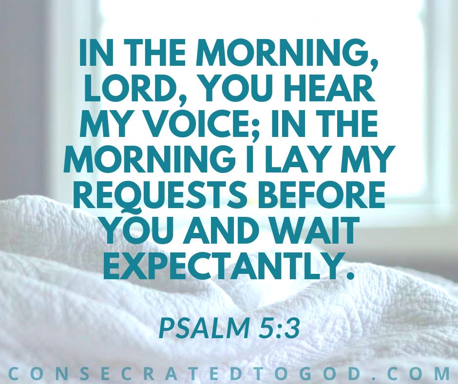 In the morning, Lord, you hear my voice; in the morning I lay my requests before you and wait expectantly.