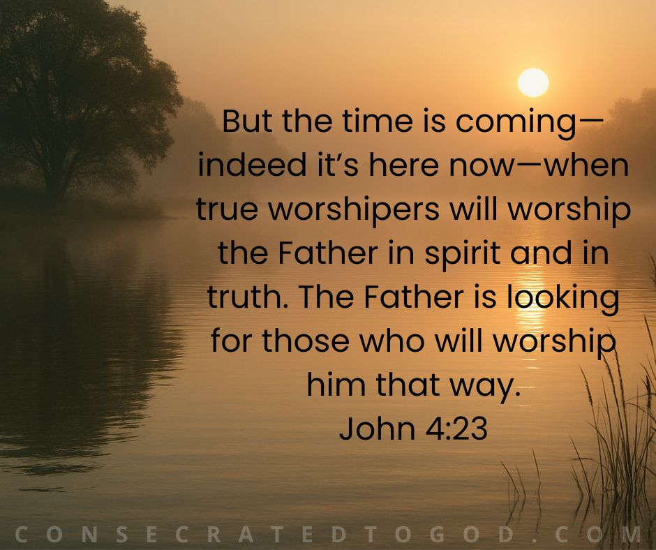 But the time is coming—indeed it’s here now—when true worshipers will worship the Father in spirit and in truth. The Father is looking for those who will worship him that way.