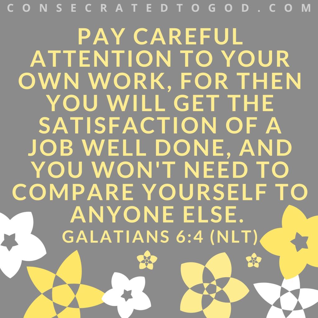 Pay careful attention to your own work, for then you will get the satisfaction of a job well done, and you won’t need to compare yourself to anyone else.