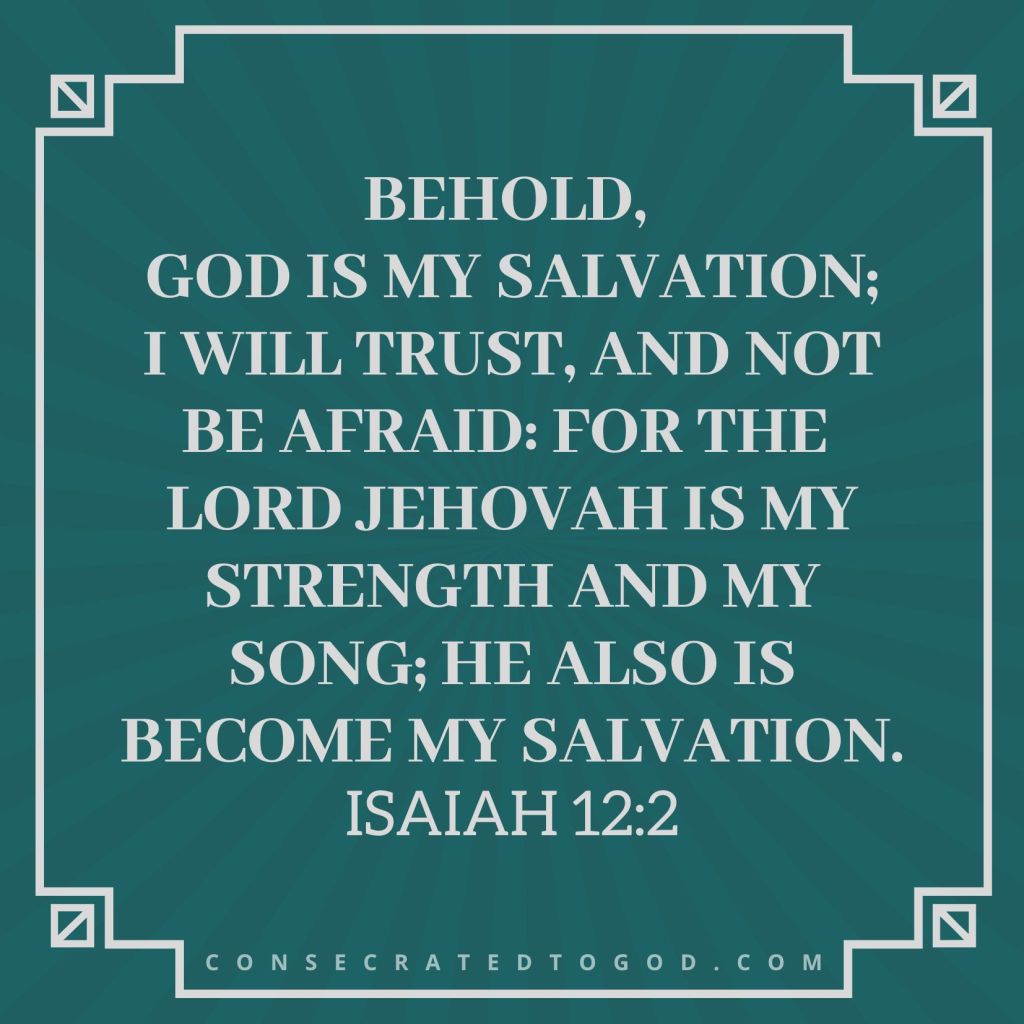Behold, God is my salvation; I will trust, and not be afraid: for the LORD JEHOVAH is my strength and my song; he also is become my salvation.