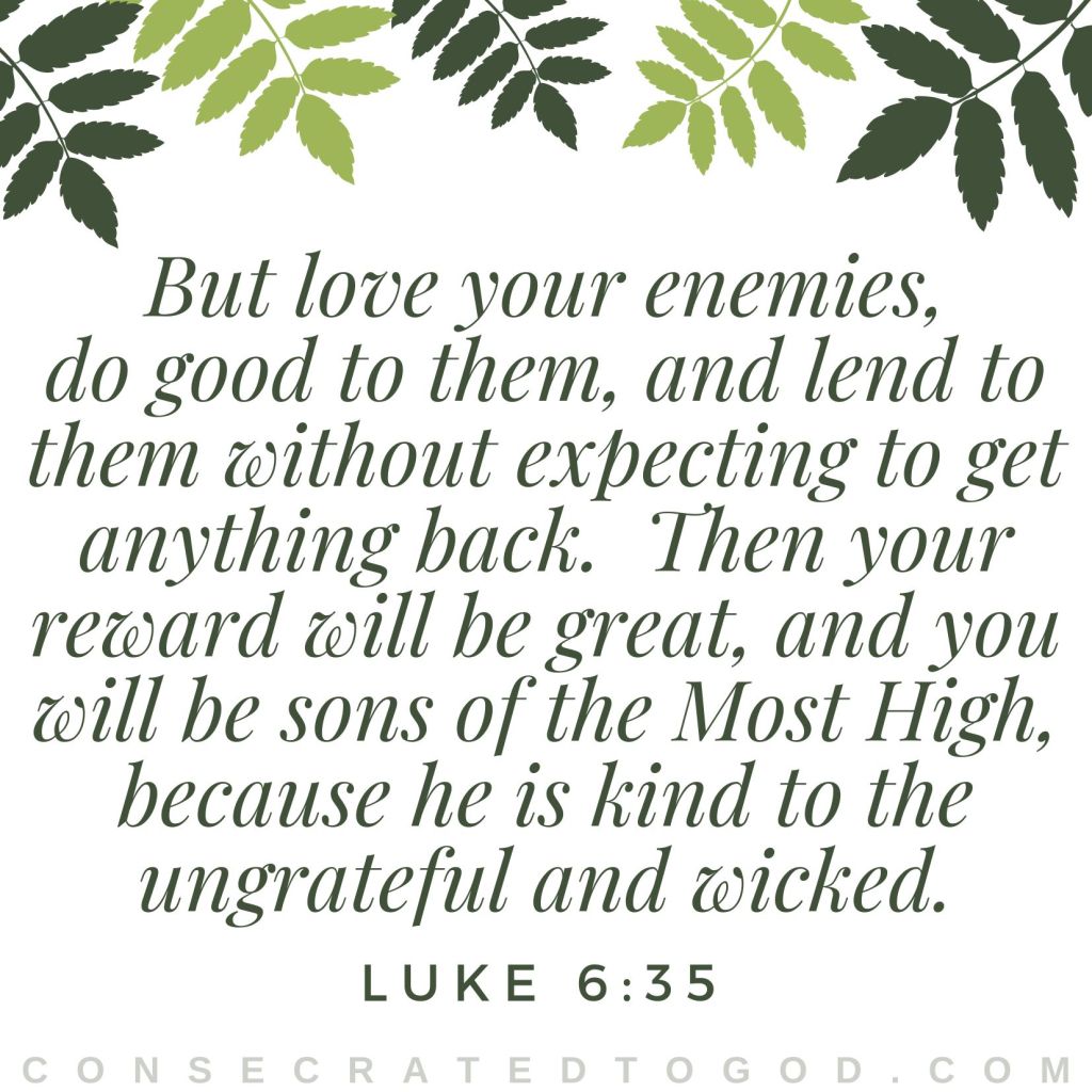 But love your enemies, do good to them, and lend to them without expecting to get anything back. Then your reward will be great, and you will be sons of the Most High, because he is kind to the ungrateful and wicked.