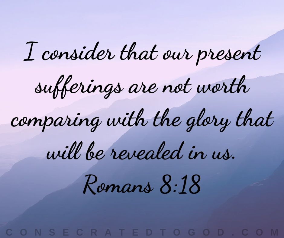 I consider that our present sufferings are not worth comparing with the glory that will be revealed in us.
