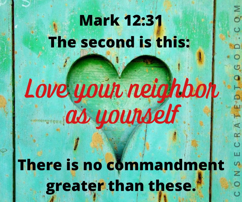 The second is this: ‘Love your neighbor as yourself.’ There is no commandment greater than these.