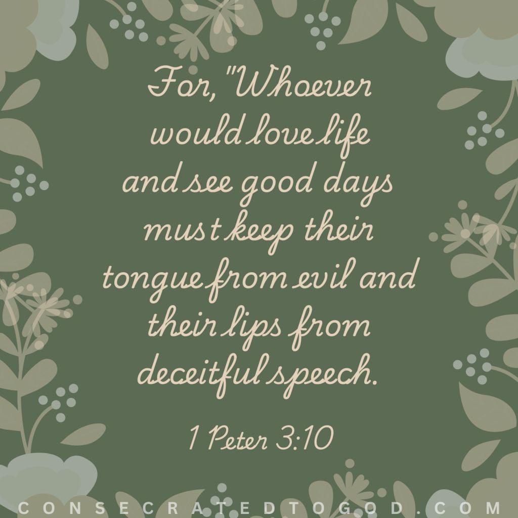 For, Whoever would love life and see good days must keep their tongue from evil and their lips from deceitful speech.