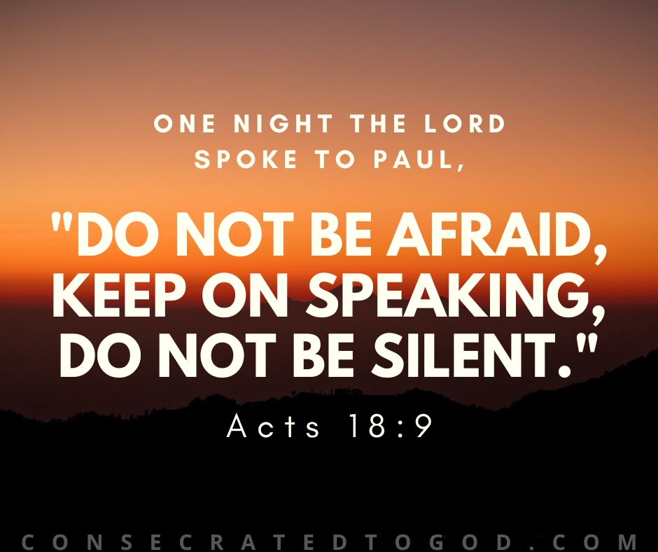 One night the Lord spoke to Paul, “Do not be afraid, keep on speaking, do not be silent.