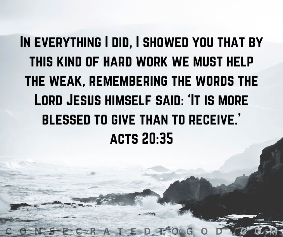In everything I did, I showed you that by this kind of hard work we must help the weak, remembering the words the Lord Jesus himself said: ‘It is more blessed to give than to receive.’