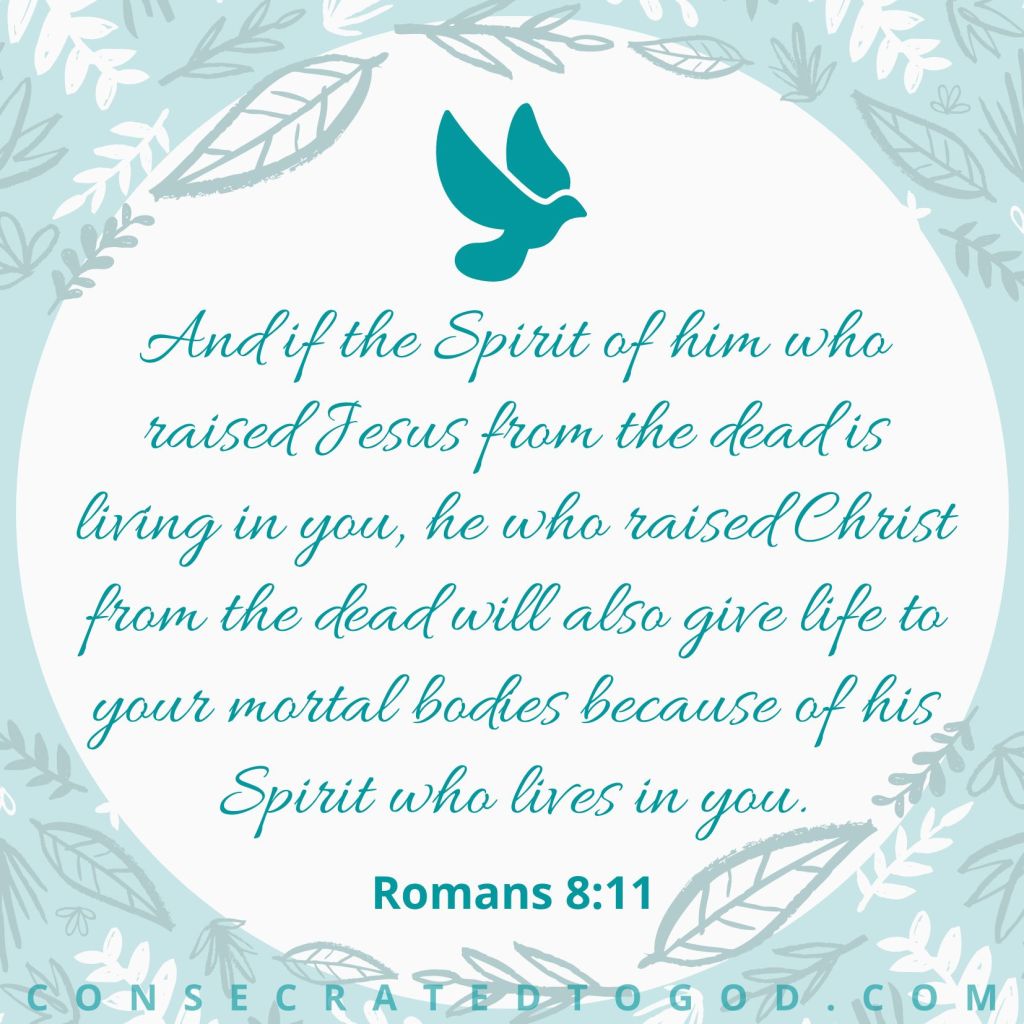 And if the Spirit of him who raised Jesus from the dead is living in you, he who raised Christ from the dead will also give life to your mortal bodies because of his Spirit who lives in you.