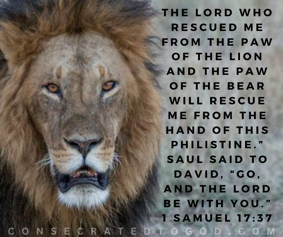 “The Lord who rescued me from the paw of the lion and the paw of the bear will rescue me from the hand of this Philistine.” Saul said to David, “Go, and the Lord be with you.”