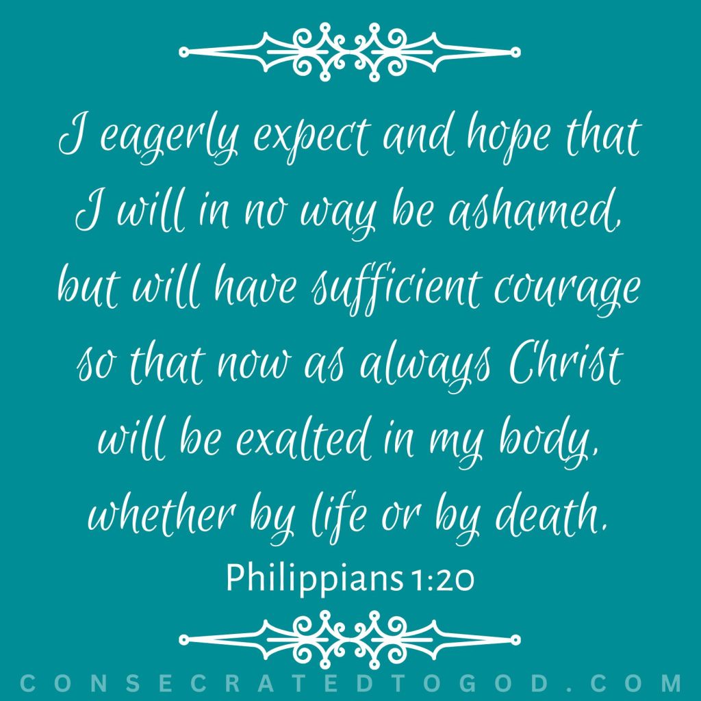 I eagerly expect and hope that I will in no way be ashamed, but will have sufficient courage so that now as always Christ will be exalted in my body, whether by life or by death.
